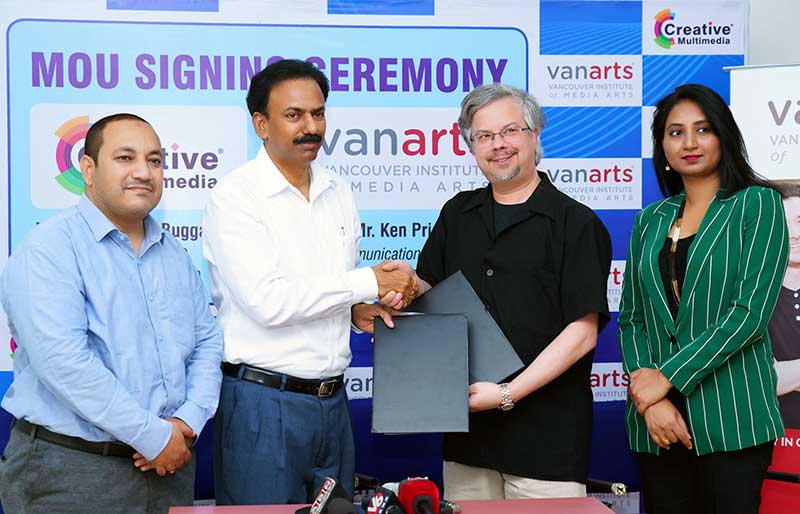 Students of Creative Multimedia Group (Dilsukhnagar -CREATIVE- ’s parent organization) now have the opportunity to pursue an advanced 3D Character Animation Program at VanArts (Vancouver Institute of Media Arts), Canada, courtesy an Articulation Agreement signed between the two institutions on Monday, the 20th of May, 2019 at Creative Multimedia’s Headquarters in Dilsukhnagar, Hyderabad.